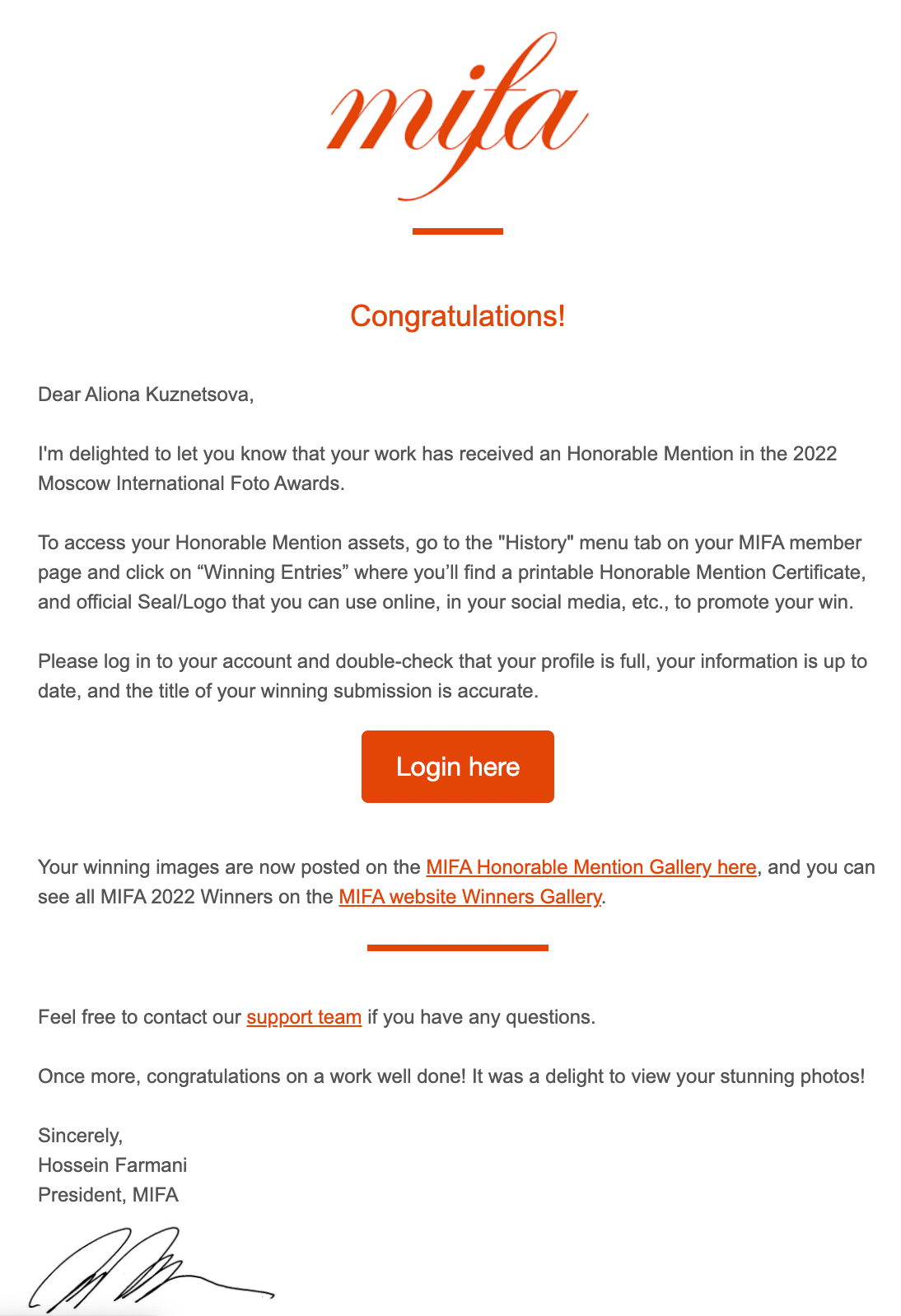 I have two burning questions for Mr. Hossein Farmani, President of MIFA: